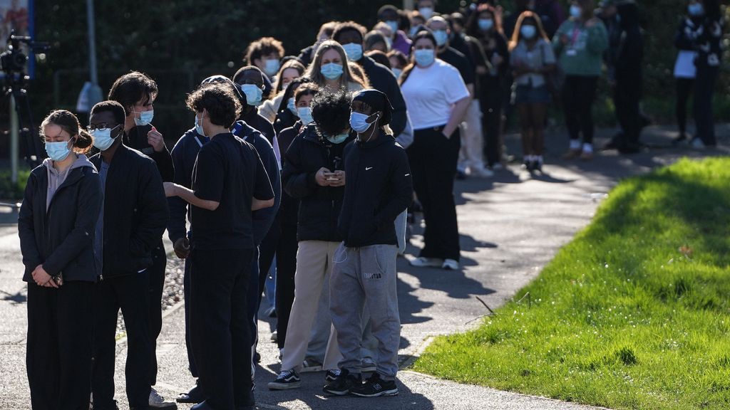Britse studenten staan op de campus in de rij voor een meningokokkenvaccin