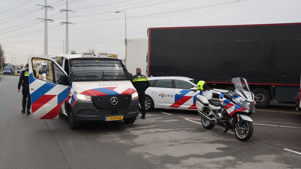De chauffeurs gingen van de weg af en reden een parkeerplaats op. Daar zijn ze door agenten aangesproken, meldt de politie. Vervolgens zijn de chauffeurs op normale snelheid teruggereden naar Rotterdam.