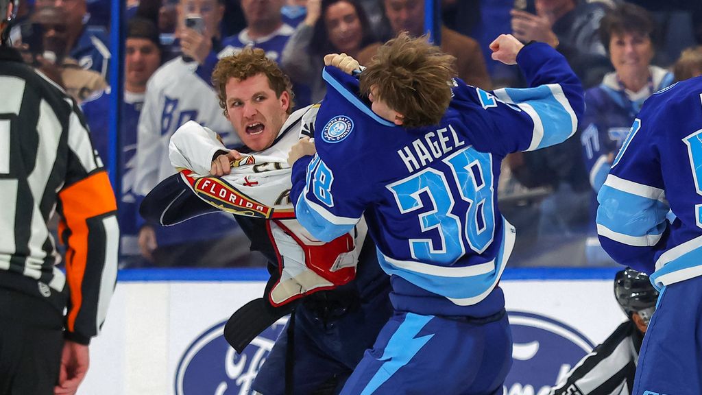 Op de dag voor de Winterspelen in Milaan gingen Matthew Tkachuk en Hegel opnieuw op de vuist, in het NHL-duel tussen Florida Panthers en Tampa Bay Lightning.