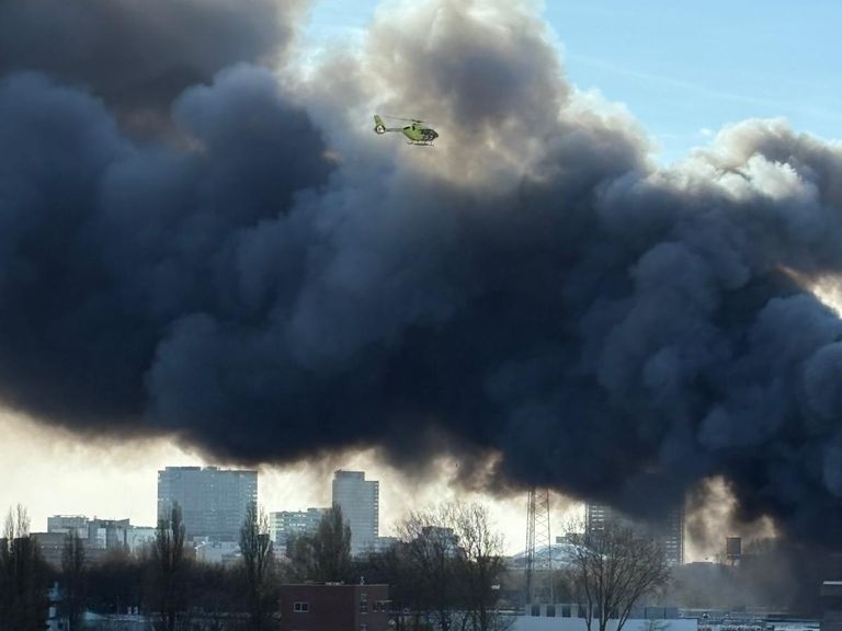 De brand op industrieterrein Westpoort ontstond even na 15.00 uur bij een bedrijf met scooters. Volgens stadszender AT5 stonden buiten het bedrijf eerst een busje en een aantal elektrische huurscooters in brand, maar sloeg het vuur over naar een opslagloods.