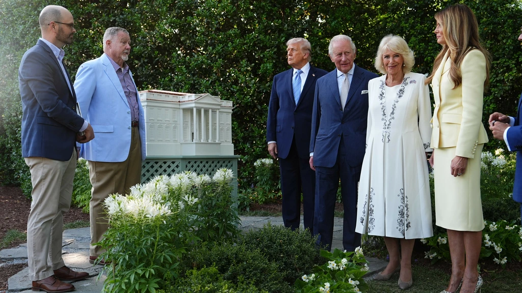 Vervolgens verplaatsten de vier zich te voet naar de tuinen op het terrein, om daar een nieuwe aanwinst te bekijken: een bijenkorf in de vorm van het Witte Huis, afgelopen week gepresenteerd door Melania. Dat programmaonderdeel moet Charles, begaan met de natuur, hebben aangestaan. Bekend is dat hij zelf zeker drie bijenkasten houdt bij zijn privéwoning in Engeland.
