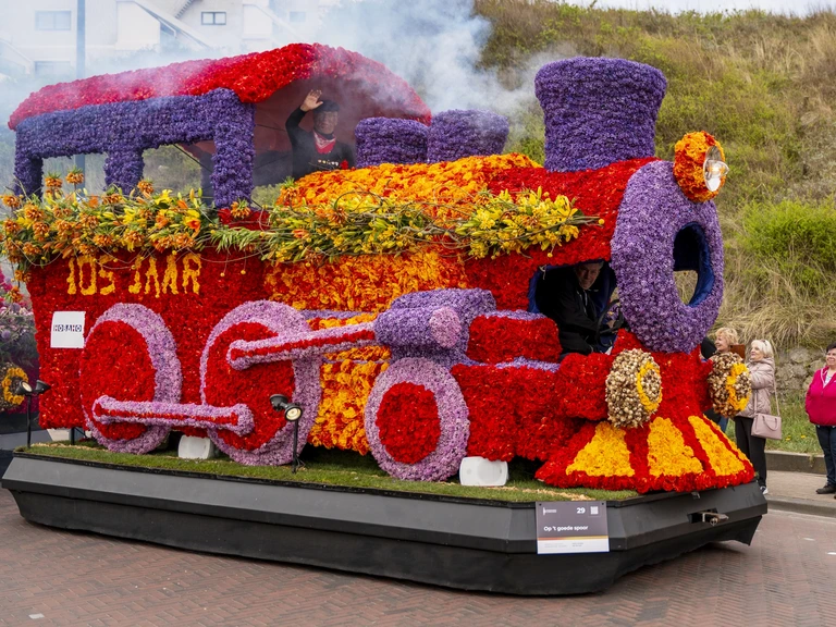 In Noordwijk is weer een begin gemaakt met het jaarlijkse Bloemencorso Bollenstreek. De hele dag ‘kruipen’ de bonte, met bloemen versierde praalwagens door de vijf dorpen in de Bollenstreek voordat ze vanavond in Haarlem aankomen. Er worden meer dan 1 miljoen bezoekers langs de route verwacht.