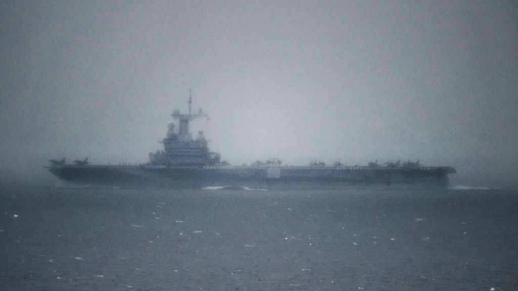 Het Franse vliegdekschip Charles de Gaullle is gezien in de straat van Gibraltar