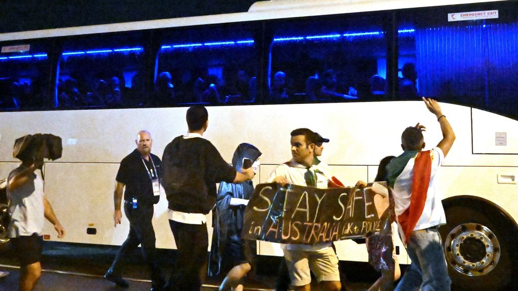 Protest bij de spelersbus in Australië