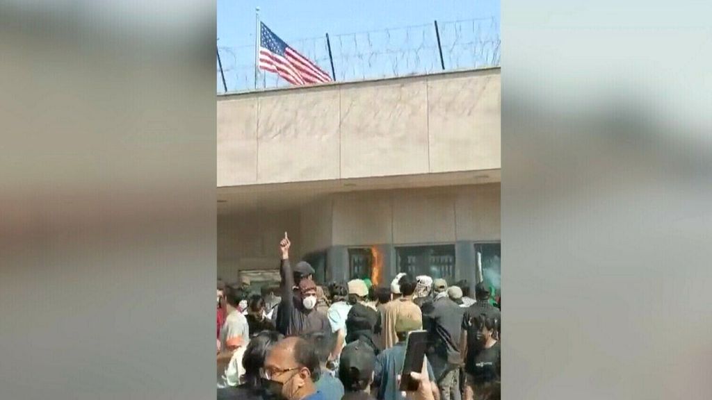 Ook in de Irak trok een woedende menigte naar de Amerikaanse ambassade. Honderden Irakezen probeerden in de hoofdstad Bagdad het zwaarbeveiligde gebied waar de ambassade zich bevindt te bestormen.