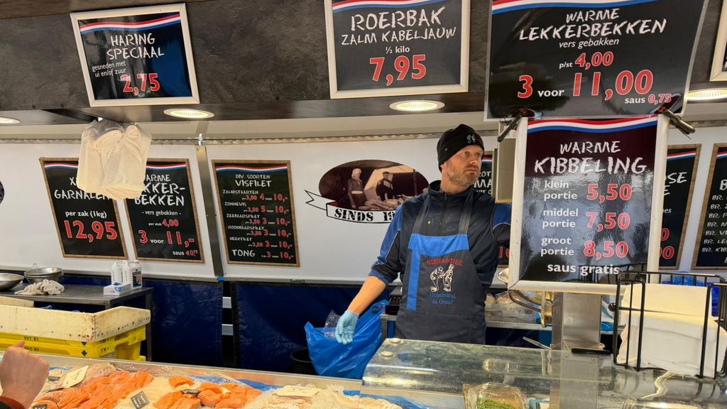 Vishandelaar Lubert de Graaf op dezelfde Utrechtse markt is op zijn beurt 400 tot 500 euro extra kwijt. Per week. “Je merkt dat alles duurder wordt: inkoop van de vis, olie, meel, gas, diesel.”