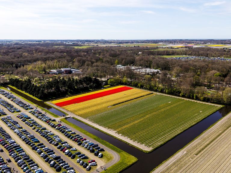 Een volle parkeerplaats bij de Keukenhof
