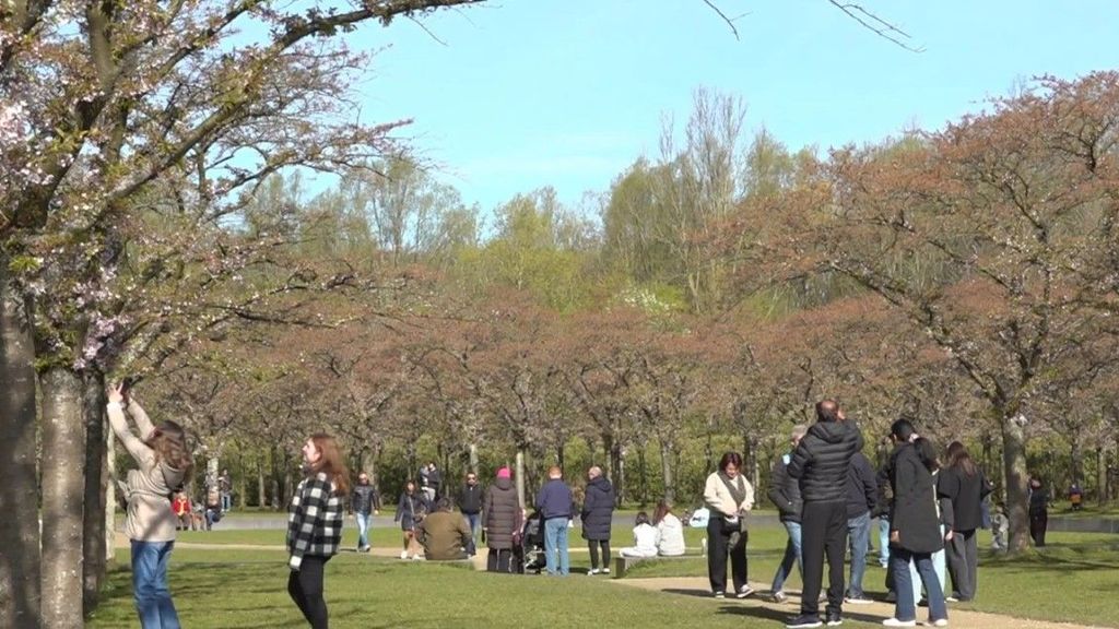 ….maar de mensen die vandaag kwamen kijken naar de kersenbloesem niet. Er waren niet veel roze bloemen meer te zien, zag omroep AT5:
