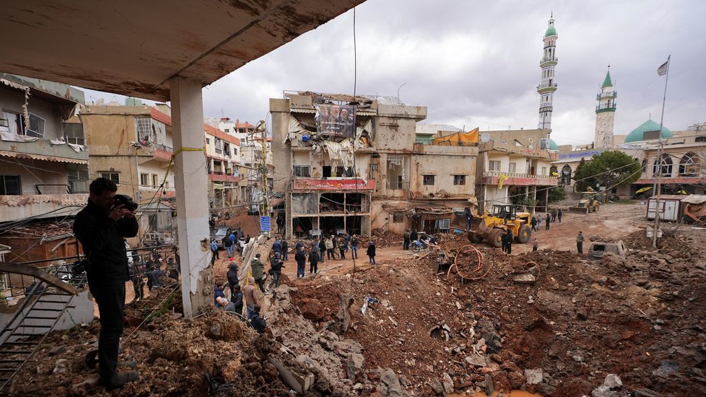 Verwoestingen in Nabi Chit na eerdere Israëlische bombardementen