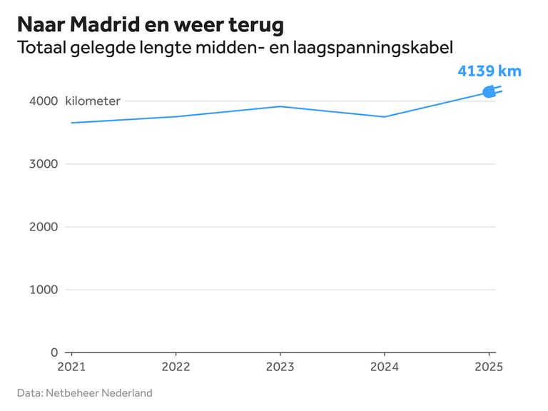 Trend in de lengte van gelegde midden- en laagspanningskabels -