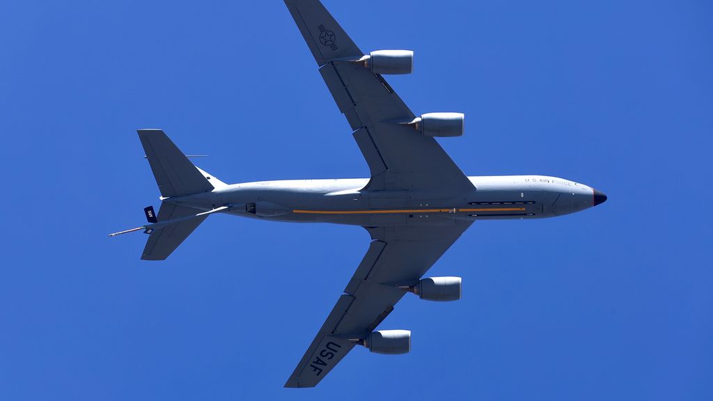 Het bewuste vliegtuig is een KC-135, een militaire versie van de Boeing 707 die in de jaren 50 is ontwikkeld. De toestellen worden ondanks hun leeftijd nog veel gebruikt om gevechtsvliegtuigen in de lucht bij te tanken.
