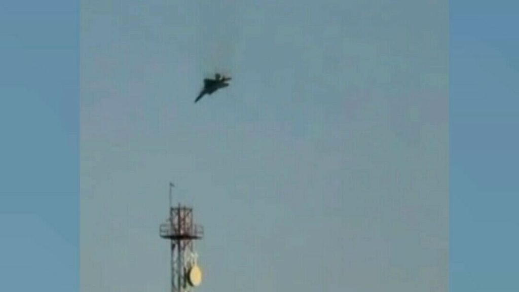 De crash van een van de gevechtsvliegtuigen werd gefilmd: