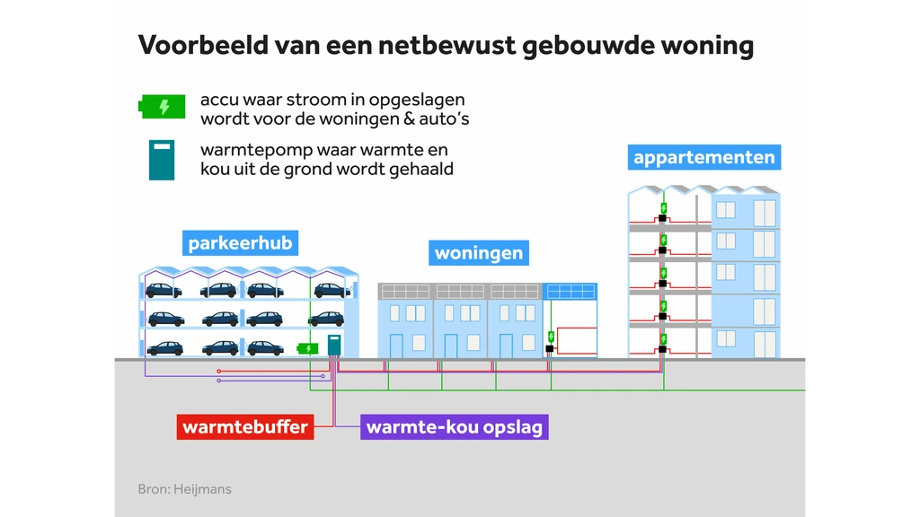 “Zo kunnen we toch blijven doorbouwen en we krijgen makkelijker toestemming van de gemeente”, zegt Zuijdwijk. Heijmans is al een paar jaar bezig met netbewust bouwen. “Dat houdt in dat je huizen energiezuiniger gaat maken met behulp van slimme apparatuur”, zegt De Waal.