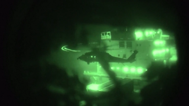 Het Amerikaanse leger heeft beelden van de beschieting en entering van het containerschip Touska vrijgegeven: