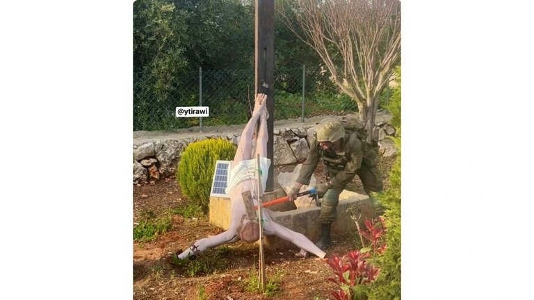 Op de foto, waarvan de authenticiteit niet bevestigd is, is te zien dat een Israëlische militair het hoofd van Jezus slaat met een grote hamer of bijl. Het zou gebeurd zijn in een overwegend christelijk dorp in het zuiden van Libanon. Sa’ar zegt dat “deze schandelijke daad in strijd is de waarden van Israël”, dat volgens hem een land is dat de verschillende religies en hun heilige symbolen respecteert.