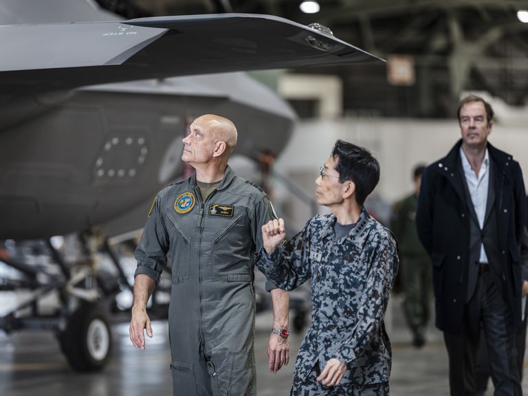 Onder het oorverdovende geronk van de motoren stijgen één voor één Nederlandse F-35-vliegtuigen op vanaf de startbaan op luchtbasis Misawa, in het noorden van Japan. “We oefenen luchtgevechten en het aanvallen van gronddoelen”, vertelt André Steur, commandant van de Lucht- en Ruimtestrijdkrachten. “Het doel van de oefening is afschrikking, maar als het misgaat moeten we als één team kunnen vechten.”
