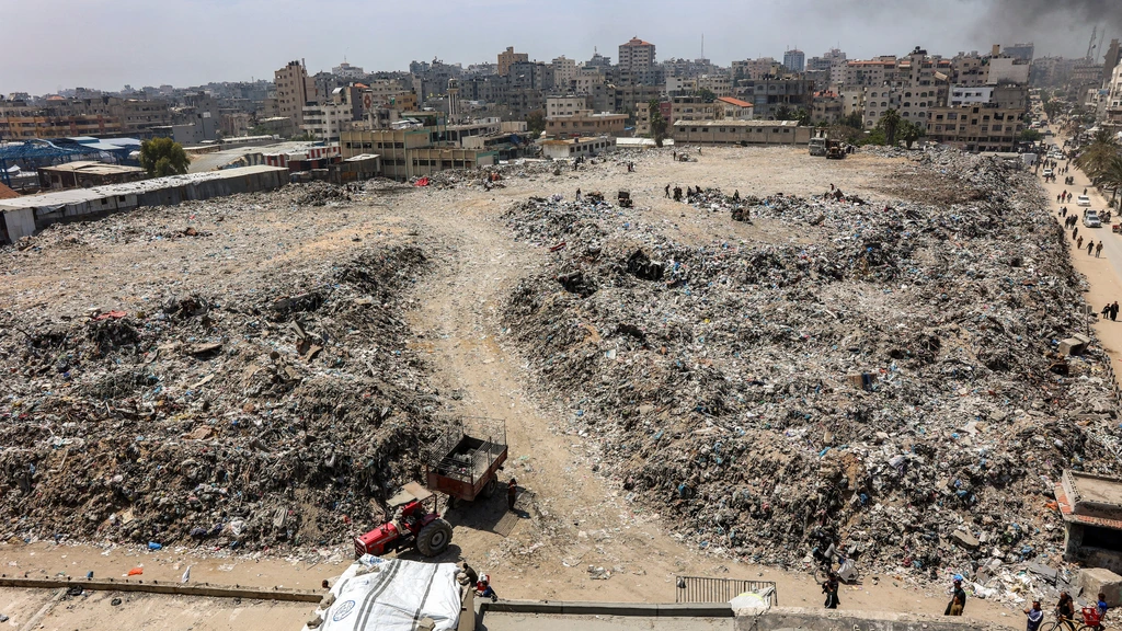 Journalisten van Bloomberg analyseerden afgelopen zomer satellietbeelden van Gaza en concludeerden dat er zo’n 350 plekken zijn waar het afval zich ophoopt. Een van de grotere afvalbergen ligt in Gaza-Stad, op de plek waar voor de oorlog een populaire markt was. Nu ligt er naar schatting zo’n 300.000 kubieke meter aan vuil.