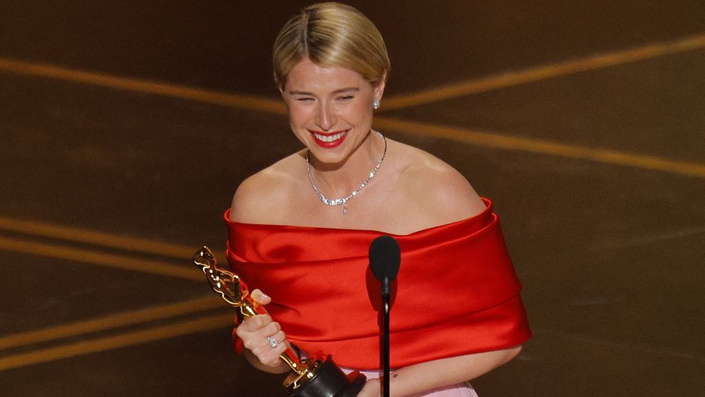 Jessie Buckley wint voor Hamnet. De Ierse actrice zet haar zegetocht dit prijzenseizoen voort. Half huilend, half schaterlachend neemt ze het beeldje in ontvangst. “Mam en pap, dank dat jullie me geleerd hebben nooit uit te gaan van iemands verwachtingen, maar van je passie.”