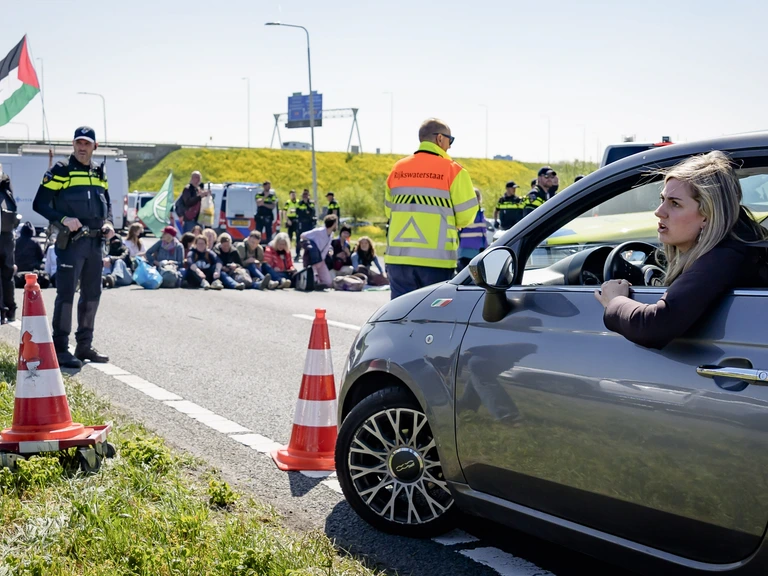 Het blokkeren van de snelweg leidt tot grote irritatie bij weggebruikers: