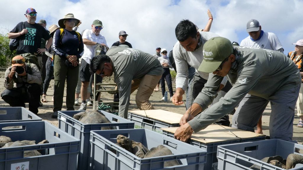 Zo’n 150 jaar na het uitsterven van de reuzenschildpad op een van de Galapagoseilanden, lopen de dieren weer rond op het eiland Floreana. De regering van Ecuador heeft er 158 uitgezet op het kleine eiland dat deel uitmaakt van de eilandengroep.