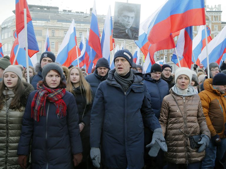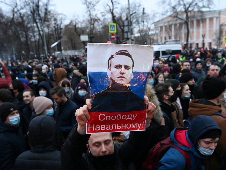 Demonstranten in Moskou eisen de vrijlating van Navalny in 2021 -