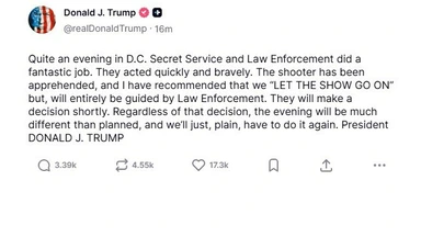 De Amerikaanse president reageerde op het incident. In een bericht op Truth Social bedankt hij de Secret Service en de politie voor hun werk. “Ze handelden snel en moedig. De schutter is opgepakt.”