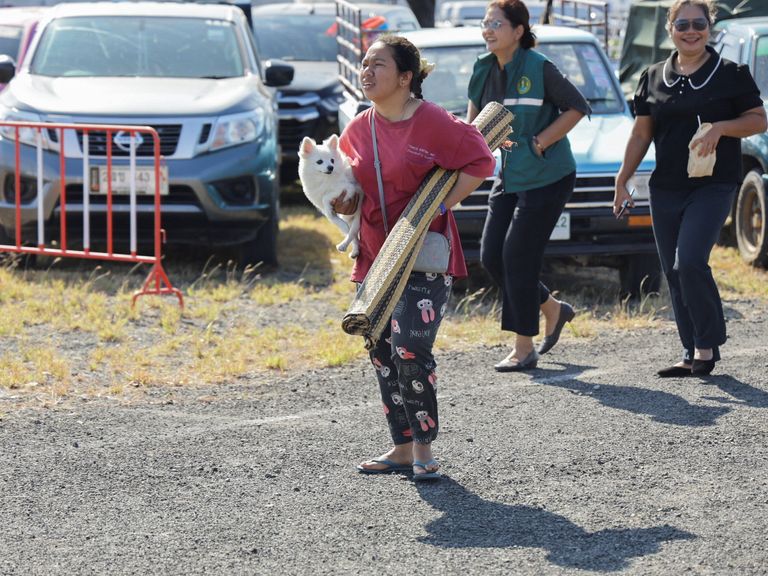 Een vrouw komt aan bij het opvangcentrum in de provincie Buriram -