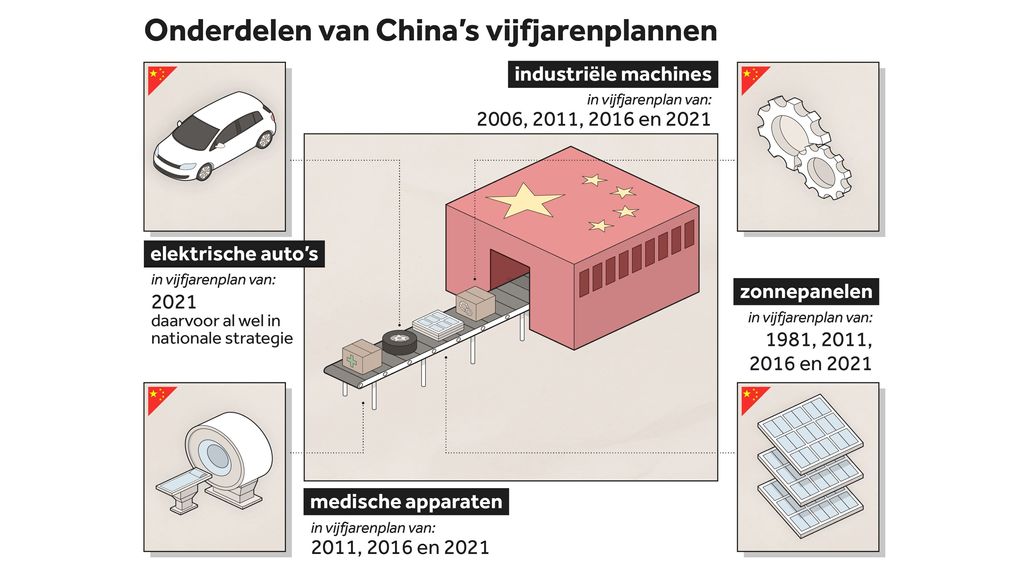 De laatste decennia heeft dat ertoe geleid dat China zich heeft ontpopt van ontwikkelingsland tot de tweede economie ter wereld. Wat merkt de Nederlandse economie van die ambities? De NOS laat dit zien aan de hand van vier producten die in voorgaande plannen stonden.