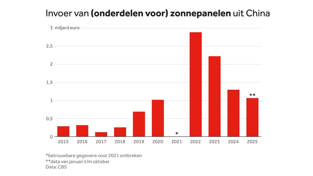 Door de enorme hoeveelheid goedkope zonnepanelen uit China is de Europese zonnepanelenindustrie zo’n tien jaar geleden vrijwel volledig weggevaagd. Het voordeel was dat mensen in Nederland in korte tijd veel goedkopere zonnepanelen konden krijgen, maar op dit gebied zijn we nu grotendeels afhankelijk van China.