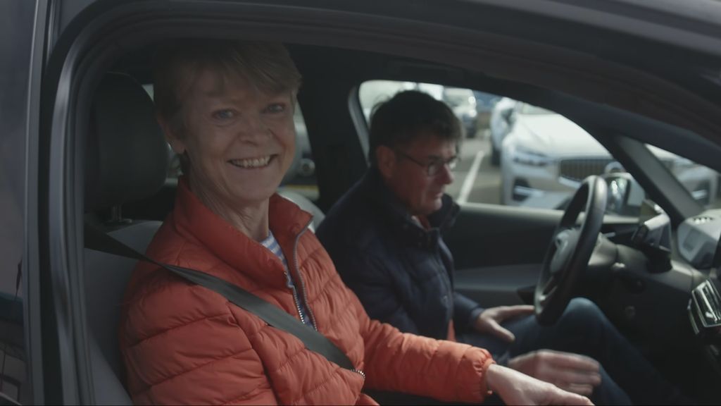 Carina en Jan de Nijs zitten nog wat onwennig in een tweedehands elektrische auto. Ze staan op het punt om een proefrit te maken. “We zijn binnen nu en een jaar toch aan een nieuwe auto toe”, aldus Carina. “Dus we zeiden, met de gestegen benzineprijzen, loont het de moeite om alvast te gaan kijken.”