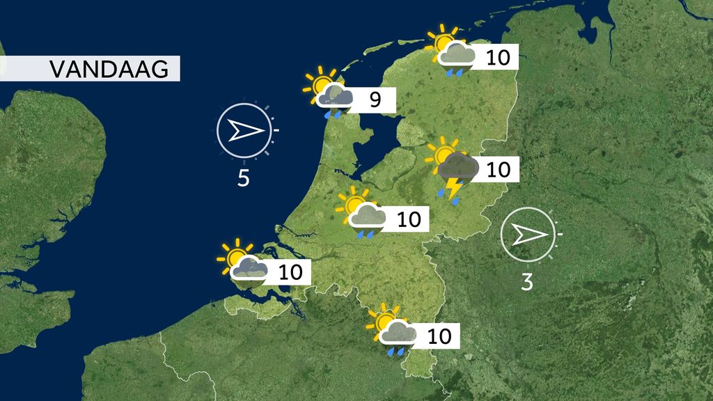 Eerst het weer: vandaag komt het vooral in het oosten tot buien, waarbij onweer en hagel mogelijk zijn. Vanmiddag wordt het vaker droog met een afwisseling van wolken en zon. De temperatuur komt uit rond de 10 graden.