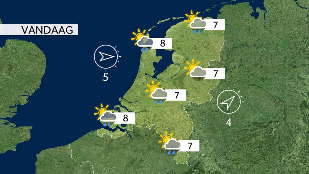 Eerst het weer: Het wordt ongeveer 7 graden. Er trekken buien vanaf het noordwesten over, waarbij soms hagel of natte sneeuw valt. De wind is matig tot vrij krachtig uit het westen.