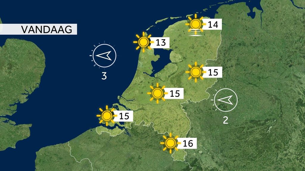Eerst het weer: het is zonnig en het wordt 13 tot 16 graden. Er is weinig wind. Morgen komt er iets meer bewolking, maar blijft het nog wel droog.