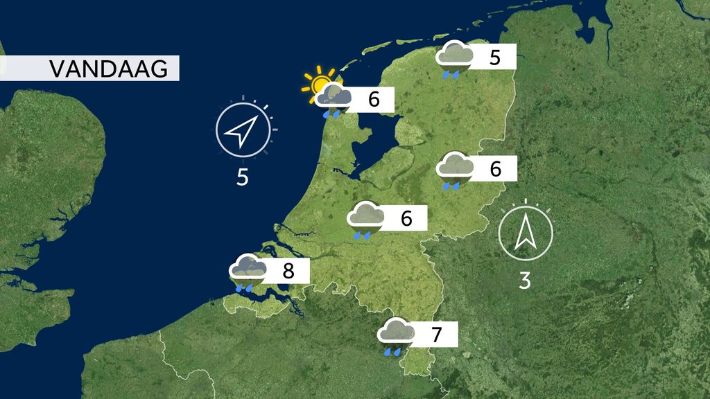 Eerst het weer: Veel bewolking en zo nu en dan een bui. Maximumtemperatuur rond 5 graden in het noordoosten van het land tot 7 graden in het zuiden. De komende dagen weinig verandering. Vooral in de nacht naar woensdag komt het landinwaarts tot een graadje vorst.