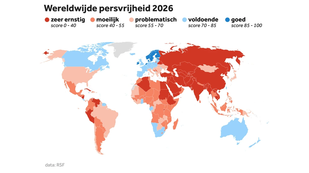 Het gaat slecht met de persvrijheid wereldwijd, blijkt uit de Persvrijheidsindex van Reporters without Borders (RSF). Nederland steeg wel een plek ten opzichte van vorig jaar: het staat nu op de tweede plaats, achter Noorwegen.